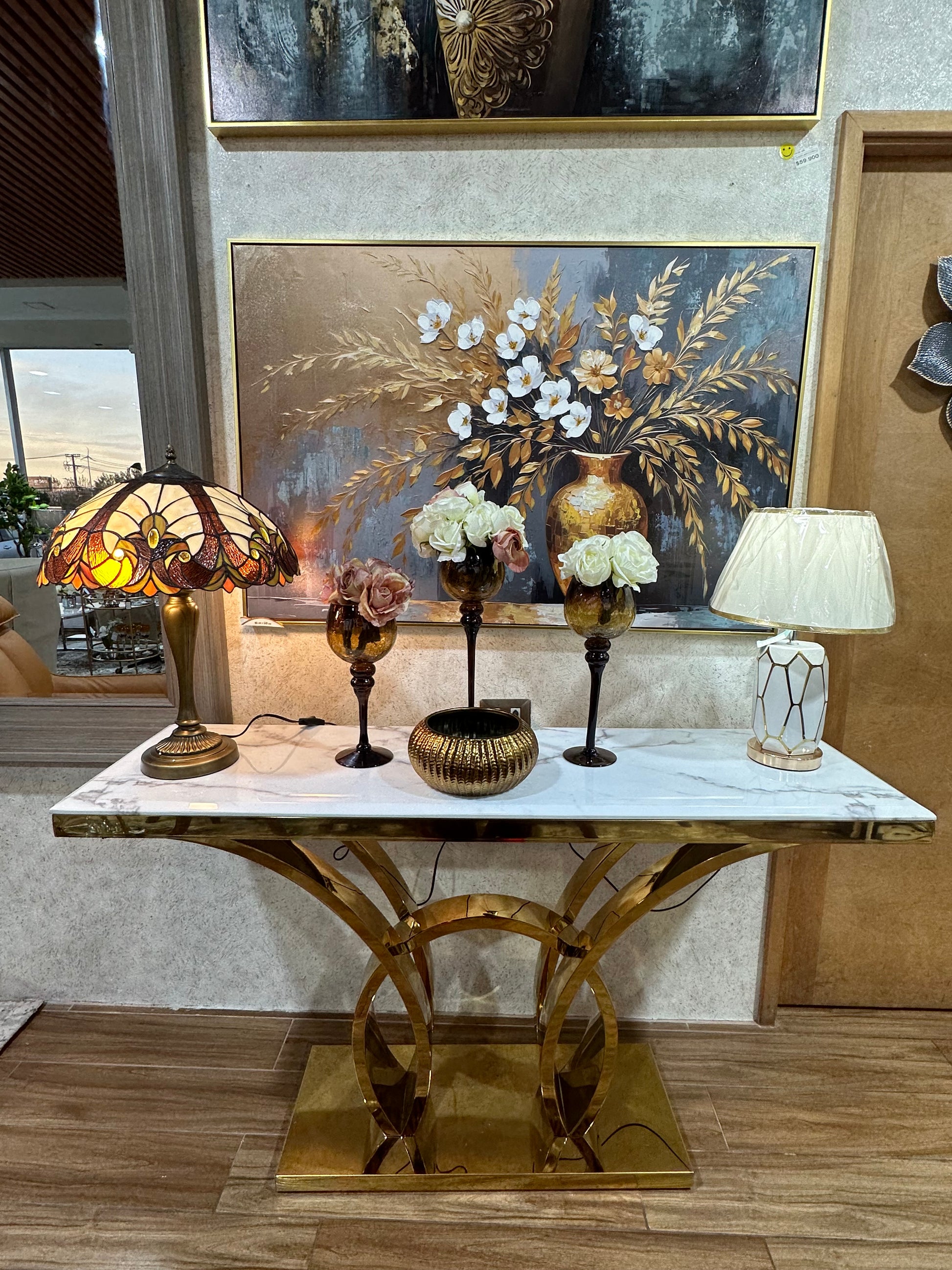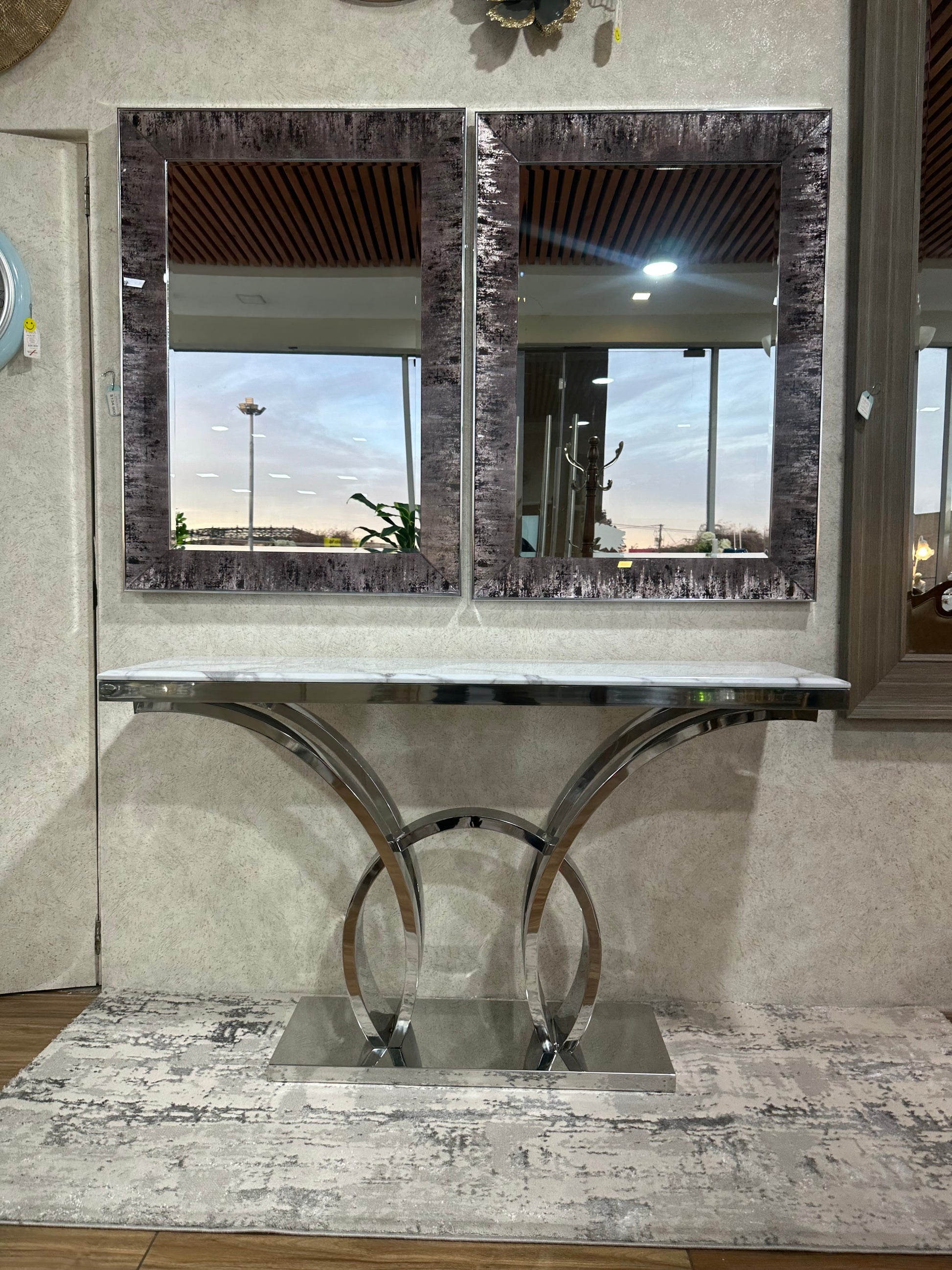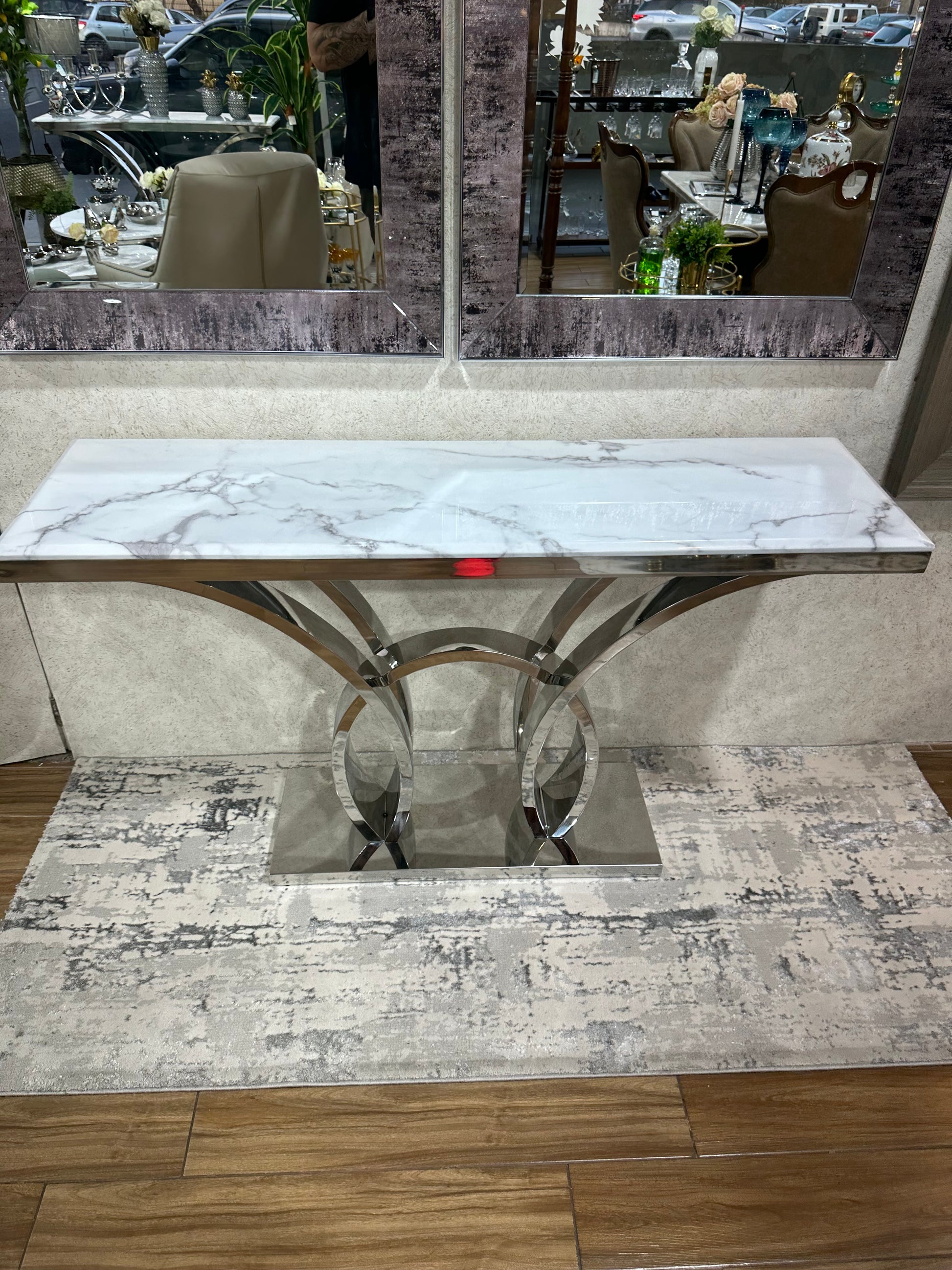 Eleva la elegancia de tu hogar con este sofisticado arrimo de diseño contemporáneo. Su estructura metálica aporta solidez y estilo industrial, mientras que la cubierta de mármol blanco reconstituido añade un toque de lujo atemporal. Ideal para entradas, livings o espacios de transición, combina funcionalidad con un diseño limpio y moderno.