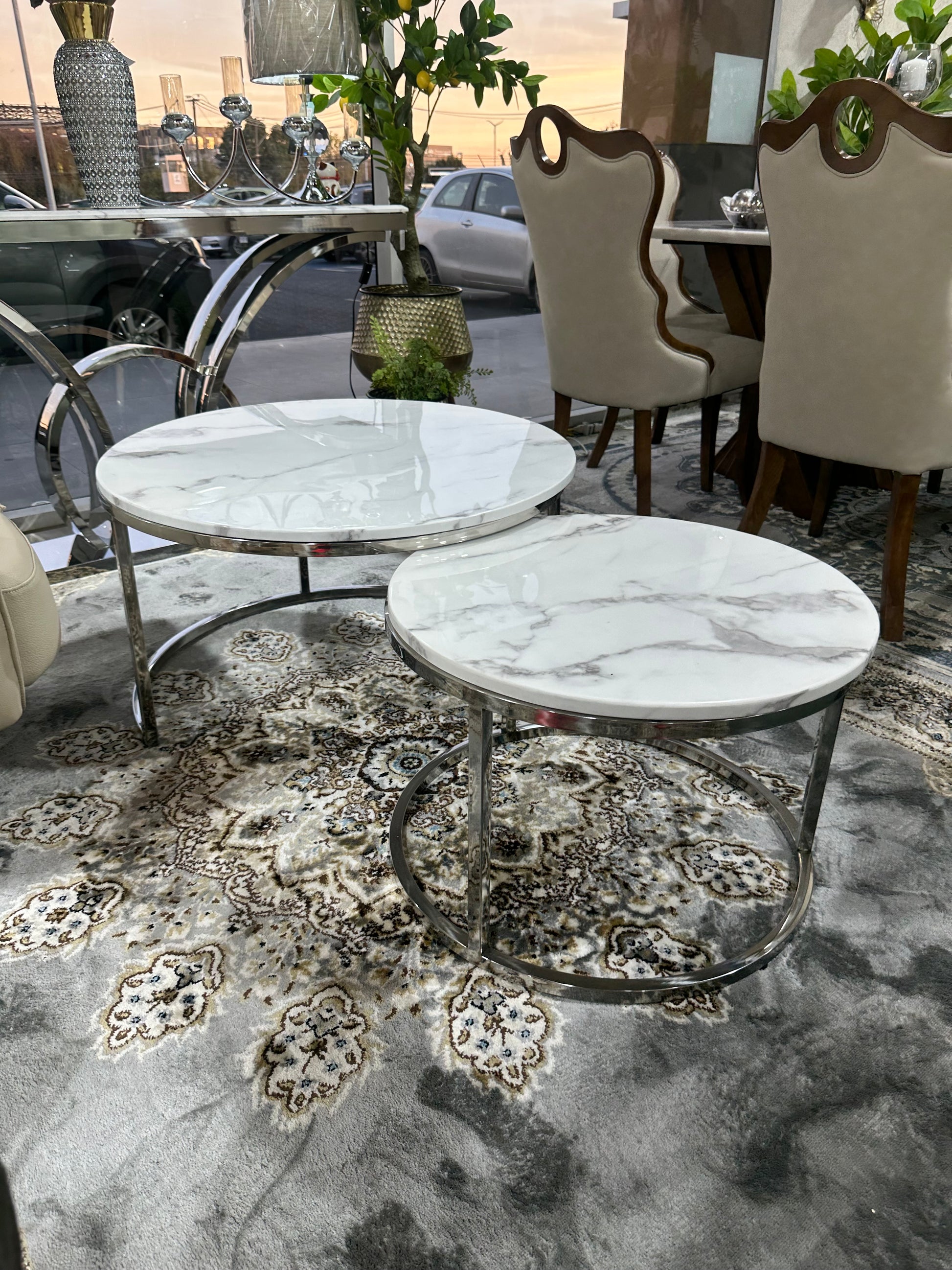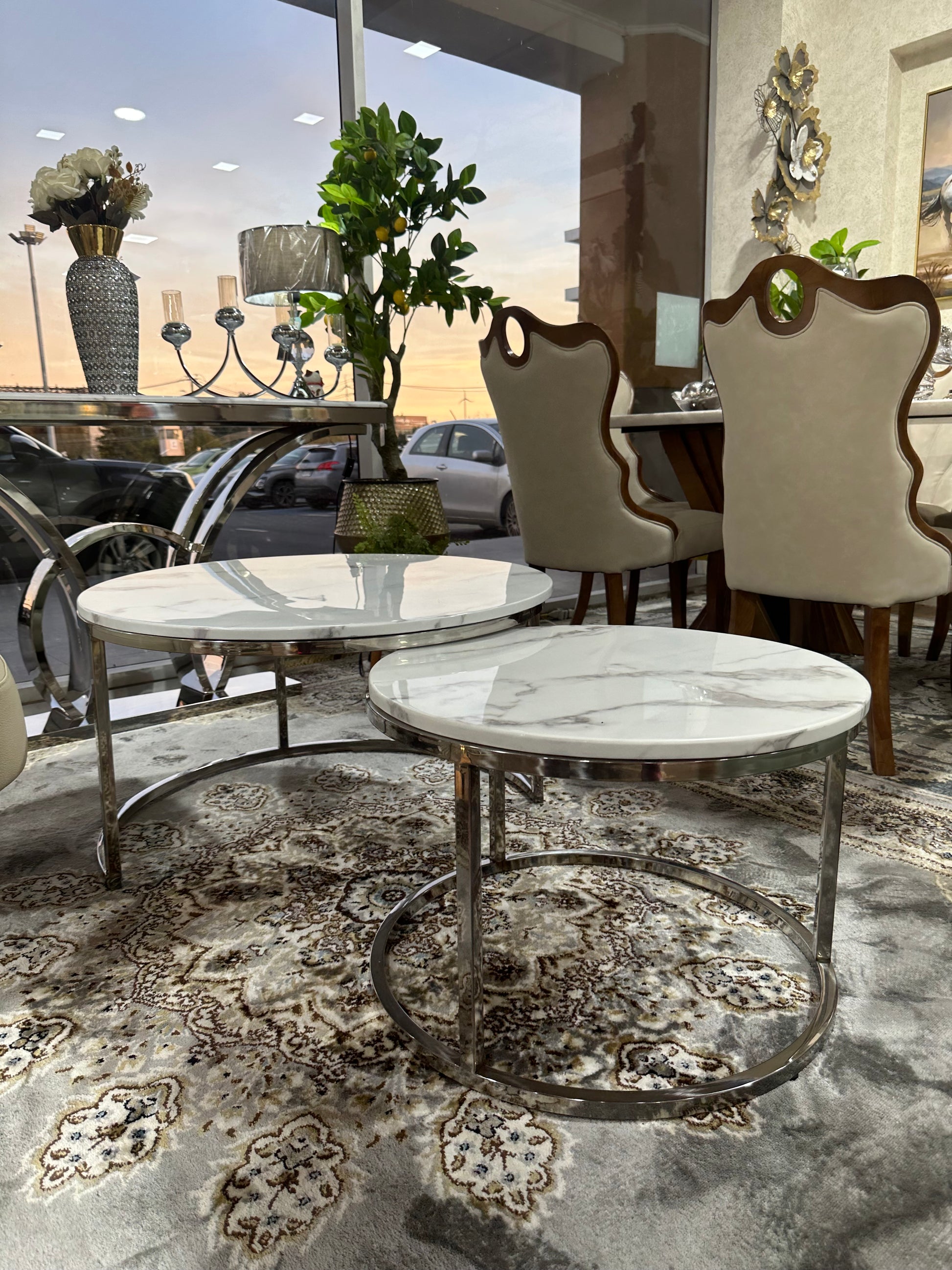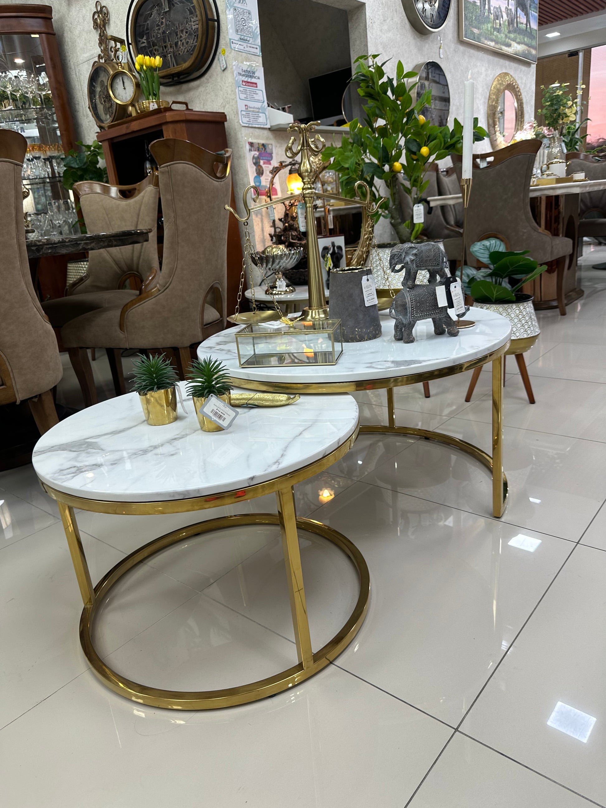 Diseño, funcionalidad y elegancia se unen en este set de mesas de centro tipo nido. Con una estructura metálica resistente y cubiertas de mármol blanco reconstituido, estas mesas aportan un aire sofisticado y contemporáneo a tu living. Su diseño anidado permite ahorrar espacio y jugar con la composición, adaptándose fácilmente a distintas necesidades y estilos de decoración.